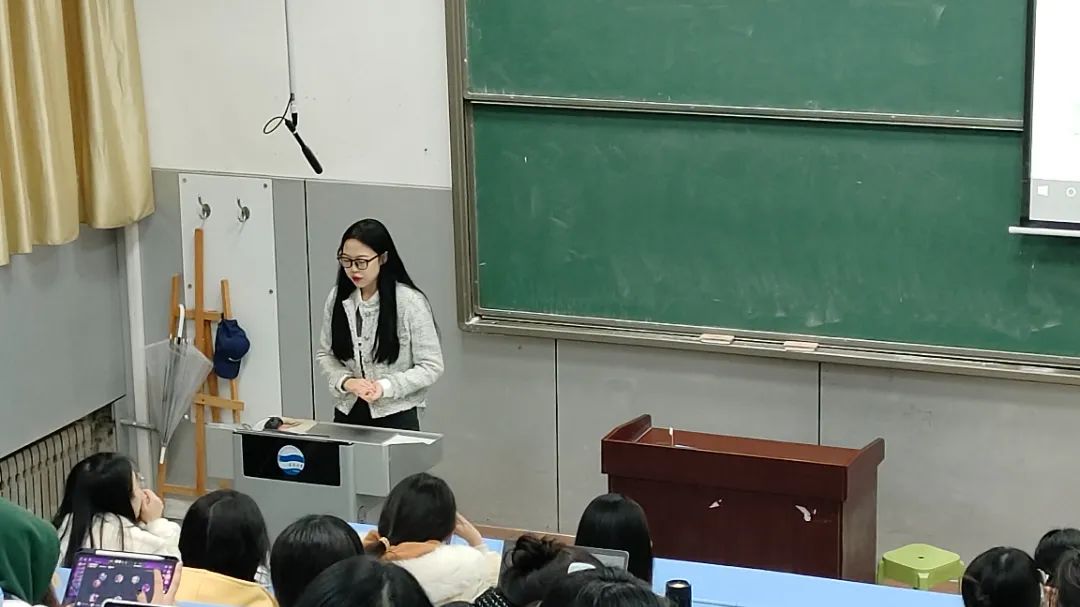陈怡丹在分享之前先与在座的师范生同学交流了教师资格证的问题,向大家分享了教师编与教招的注意事项,鼓励师范生积极参加师范生技能大赛,为后续选岗积累优势。她还为同学们推荐了多个优秀公众号,强调师范生要重视试课讲课、教姿教态以及对课本与教材的把握等。