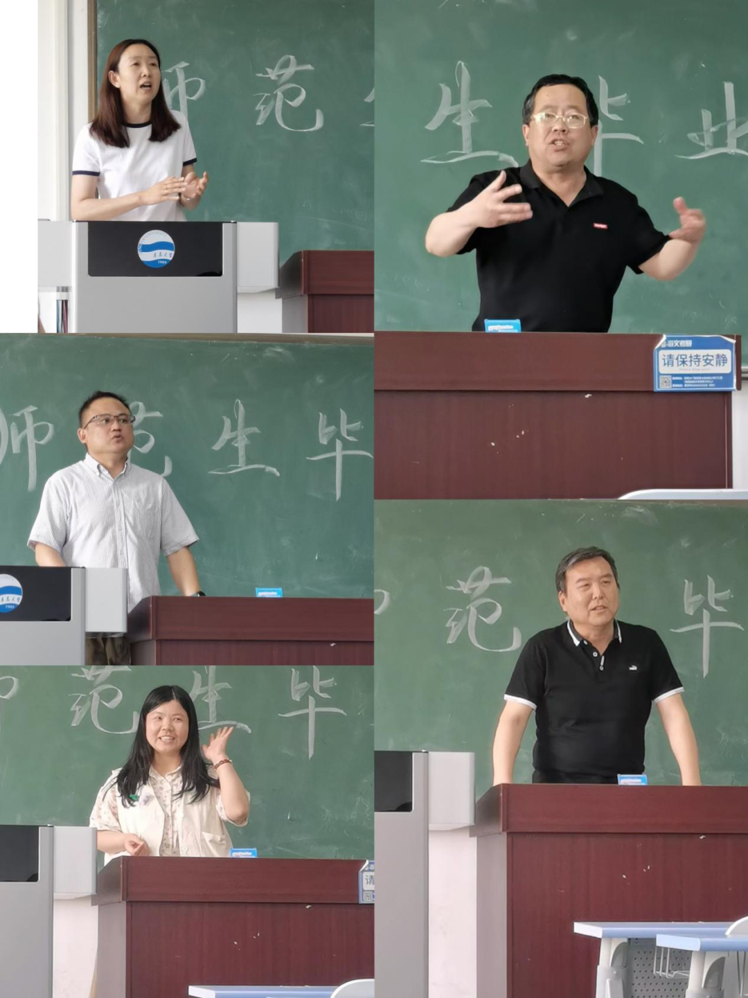 谢新华老师、杨忠华老师、张晓明老师、贤红霞老师、祝天瑞老师分享了与同学们的深刻记忆,并对比了往昔大学生活,鼓励同学们做研究型老师,终身学习。