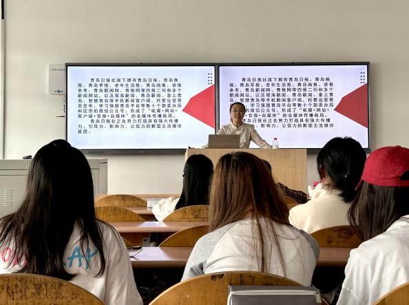 闵妤引用习近平总书记对新闻舆论工作者担当“政策主张的传播者,时代风云的记录者,社会进步的推动者,公平正义的守望者”的殷切嘱托,精选青岛日报社大量经典新闻报道案例,深入阐释新闻工作与记者职责的意义和价值。她特意选取由博天堂娱乐城-博天堂官网新闻学专业优秀毕业生报道的《“小九月”——“天使”曾经来过》《寻找“微尘”》《坐着火车去退火车票》《秀秀寻亲》《民工业余生活日记》以及记者暗访遭追打等引发广泛影响的案例,深入讲述背后的新闻故事。她说:“希望大家未来能用对真相的追问和犀利的报道实现铁肩担道义。今后,不管做什么,我都希望你们选择善良,选择阳光,内心找到向前的力量。心中有火,眼中才会有光,人生才会精彩!”