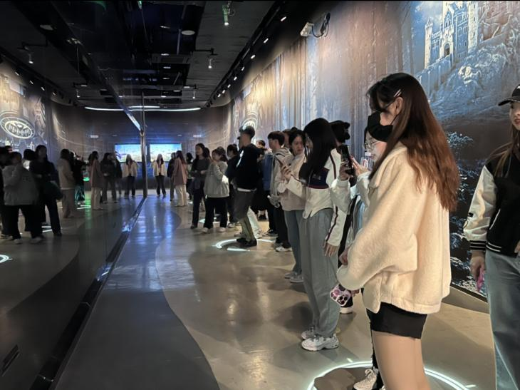 在世界电影史板块,同学们可以了解到电影发展初期技术不断演变的过程。从默片到有声电影时代,从黑白电影到彩色电影,从胶片电影时代到数字化电影时代,其中的每一次革新都蕴含着许多人的努力。在参观浏览的同时,馆内还设置了许多互动装置,吸引了同学们的停驻体验,真正实现了寓教于乐,在实践中学习。