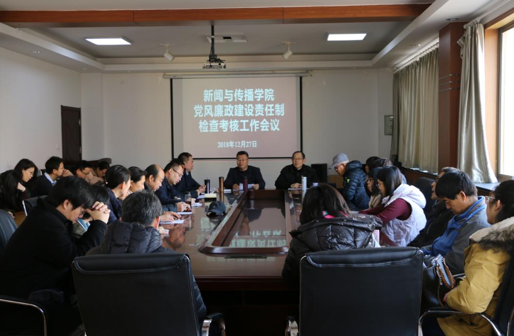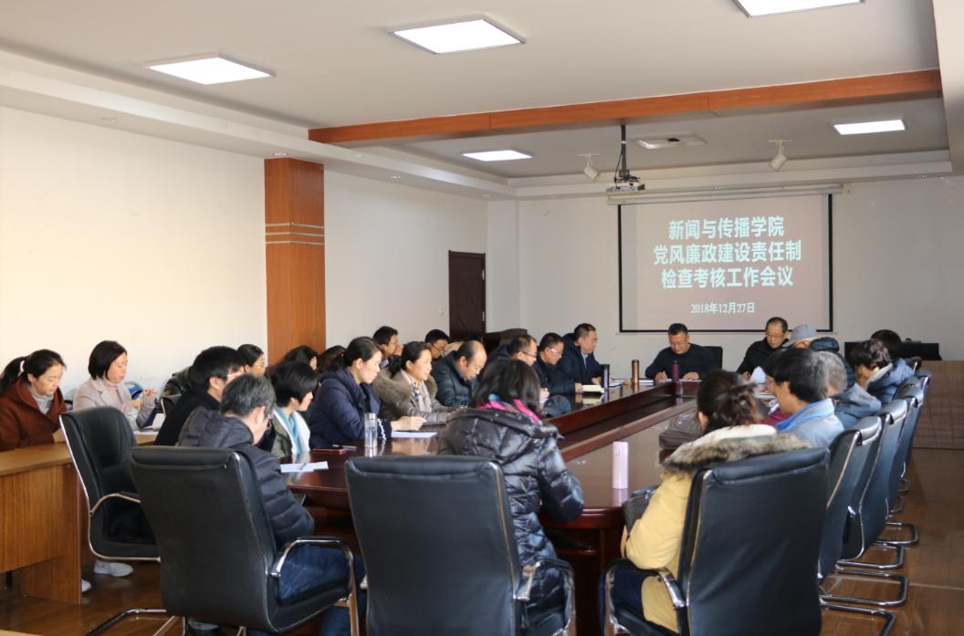 2018年12月27日,新闻与传播学院在博文楼512会议室召开党风廉政建设考核和年终考核工作会议,会议对党风廉政建设责任制落实情况、二级单位、学院中层干部进行了考核,并部署了2018年度事业单位工作人员考核工作、2018年度教职工岗位考核工作,传达了学校期末教学工作会议精神。