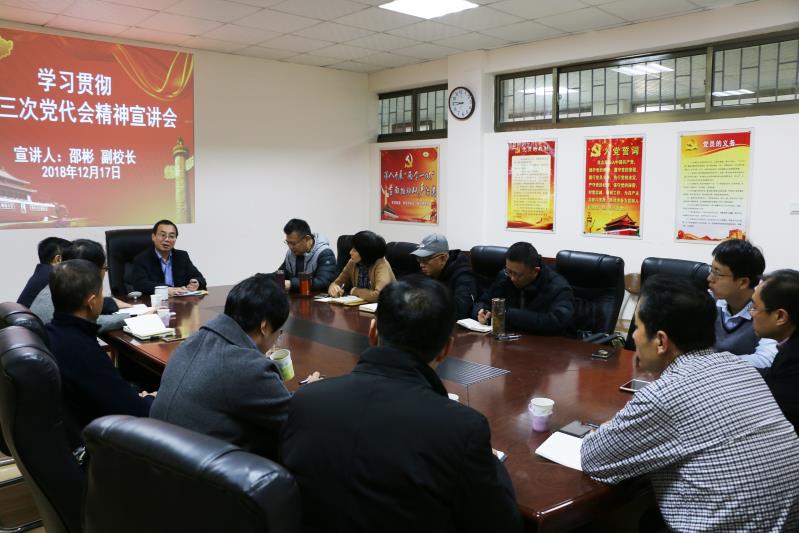 12月17日上午,校领导邵彬到文学院、新闻与传播学院宣讲中共博天堂娱乐城-博天堂官网第三次代表大会精神。宣讲座谈会在博文楼412会议室举行,文学院及新闻与传播学院领导班子成员以及党员代表参加会议。