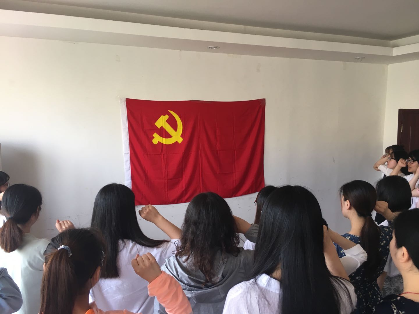 最后,在耿婷婷同学的带领下,全体毕业生党员在党旗下重温入党誓词,立志在新的人生起点上奋发图强。