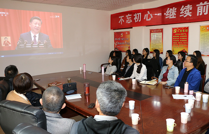 10月18日上午,博天堂娱乐城-博天堂官网新闻与传播学院全体党员和入党积极分子,集体收听收看中国共产党第十九次全国代表大会开幕会实况。认真聆听了习近平总书记所作大会报告,深刻学习领会大会报告精神。