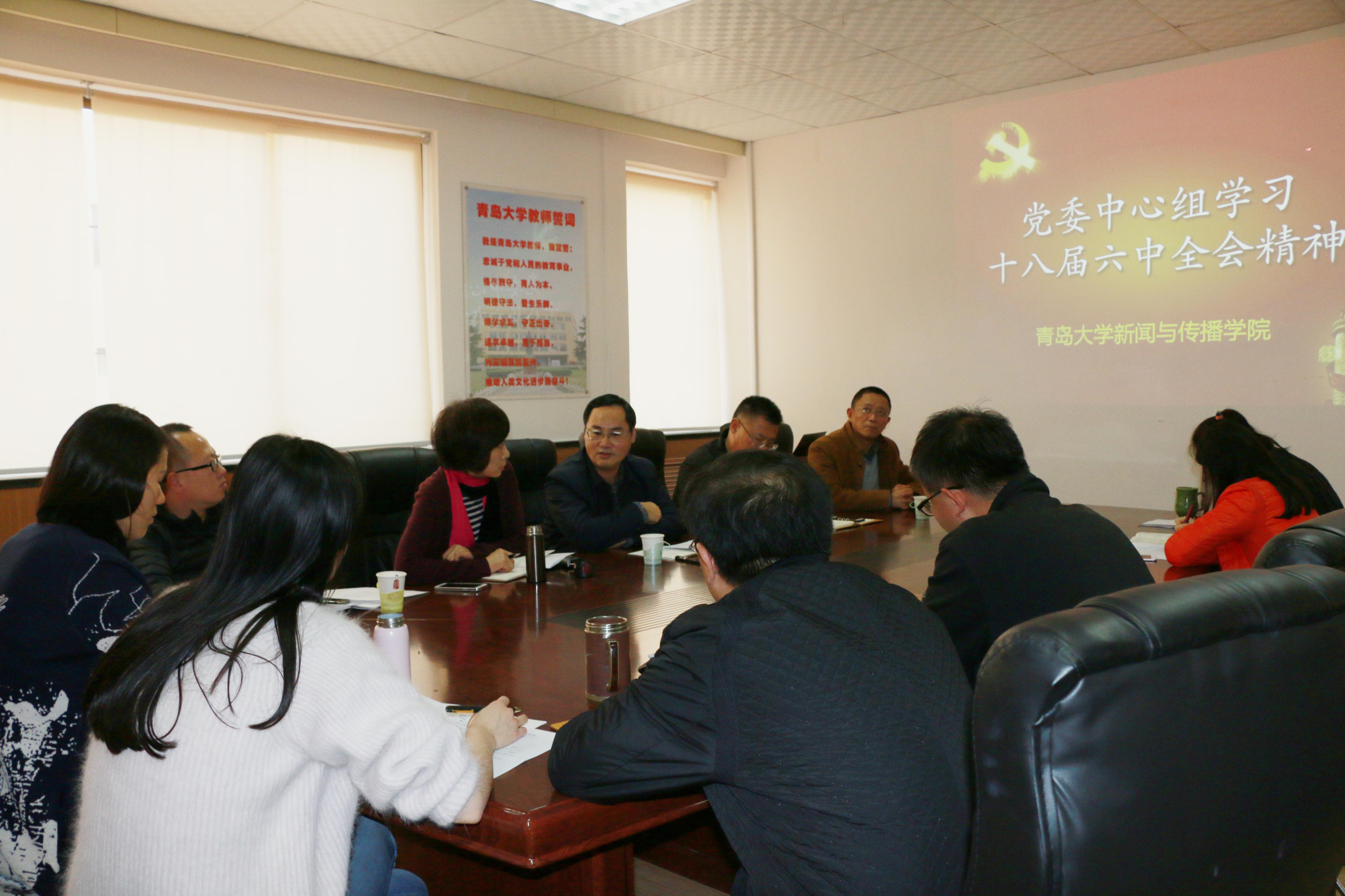 11月10日下午,新闻与传播学院党委中心组(扩大)在博文楼412会议室举行专题学习会,学习贯彻党的十八届六中全会精神。校党委常委、副校长李军参加学习会并讲话。学院党委书记张银亭主持学习会。学院党政领导班子成员、各党支部书记、系主任参加了学习。