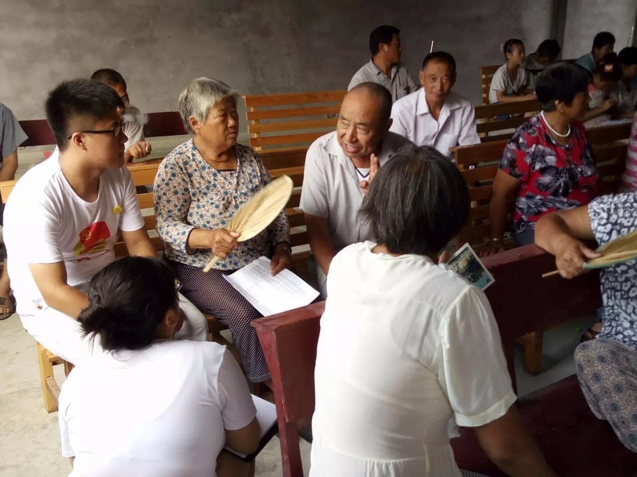 最后,文学院学生党员与玉山村的村支部委员及老党员同志们进行了现场交流。文学院的学生党员通过向老党员提问题的方式,进一步了解了玉山村的各方面情况。从贫困户的评定公开化到孤寡老人的健康关注度,从留守儿童的教育问题到爱国教育的推广普及,文学院的学生党员们从各个方面入手,与村里的党员同志们深入交流,从老党员的工作中吸取经验。