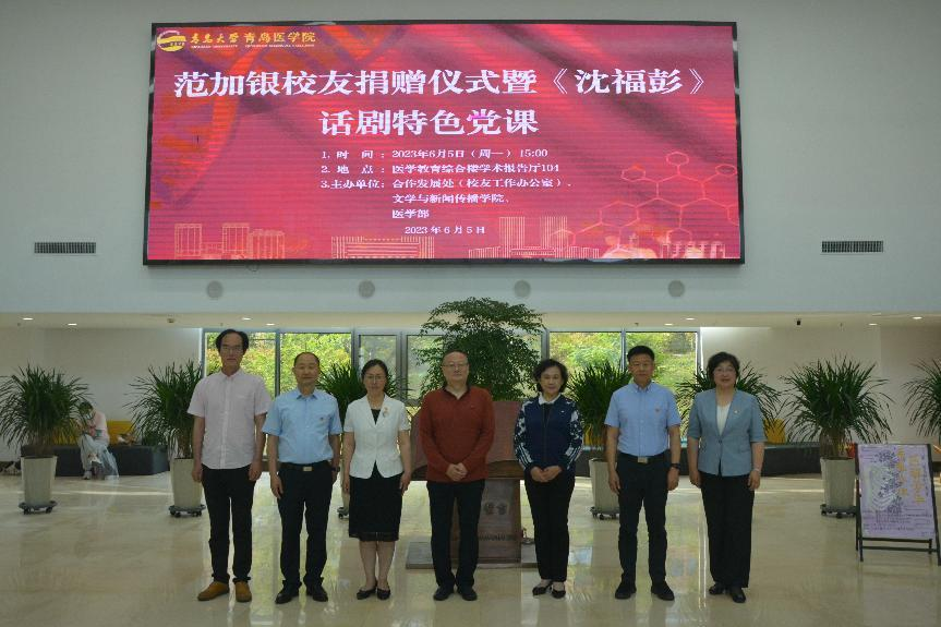 、医学部共同主办的《沈福彭》话剧特色党课暨范加银校友捐赠仪式在浩园医学教育综合楼学术报告厅举办。