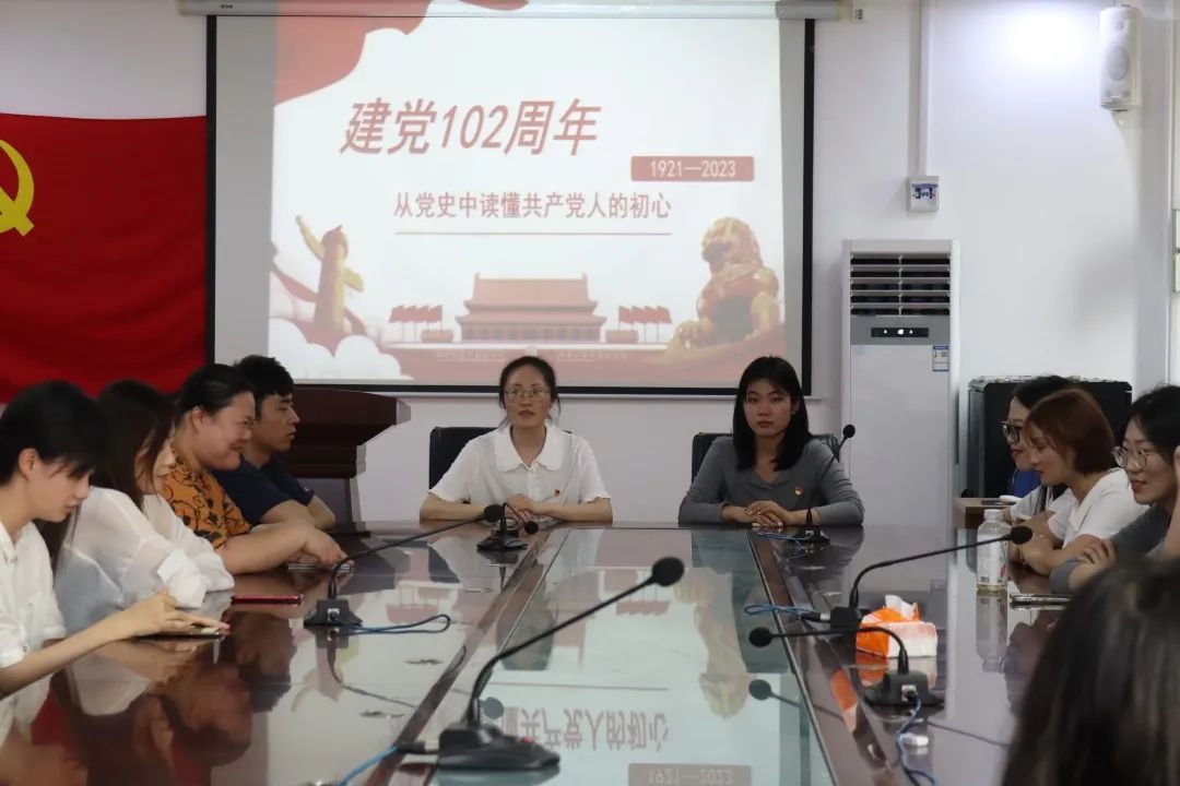 研究生党支部、研究生会于6月28日下午在博文楼521会议室举行“建党102周年—从党史中读懂共产党人的初心”主题党日活动。研究生党支部书记宋静宜、研究生辅导员王凤娇、研究生党员及入党积极分子参加活动。此次活动由研会轮值主席彭卓主持。