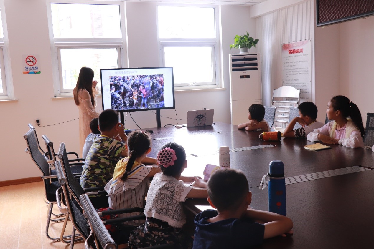 孙铭一同学负责引导小记者们了解了新闻的概念和意义,她在此次的讲解过程中采取了互动和举例子的讲授方式,而孩子们也从开始到结束一直保持着全神贯注的状态。