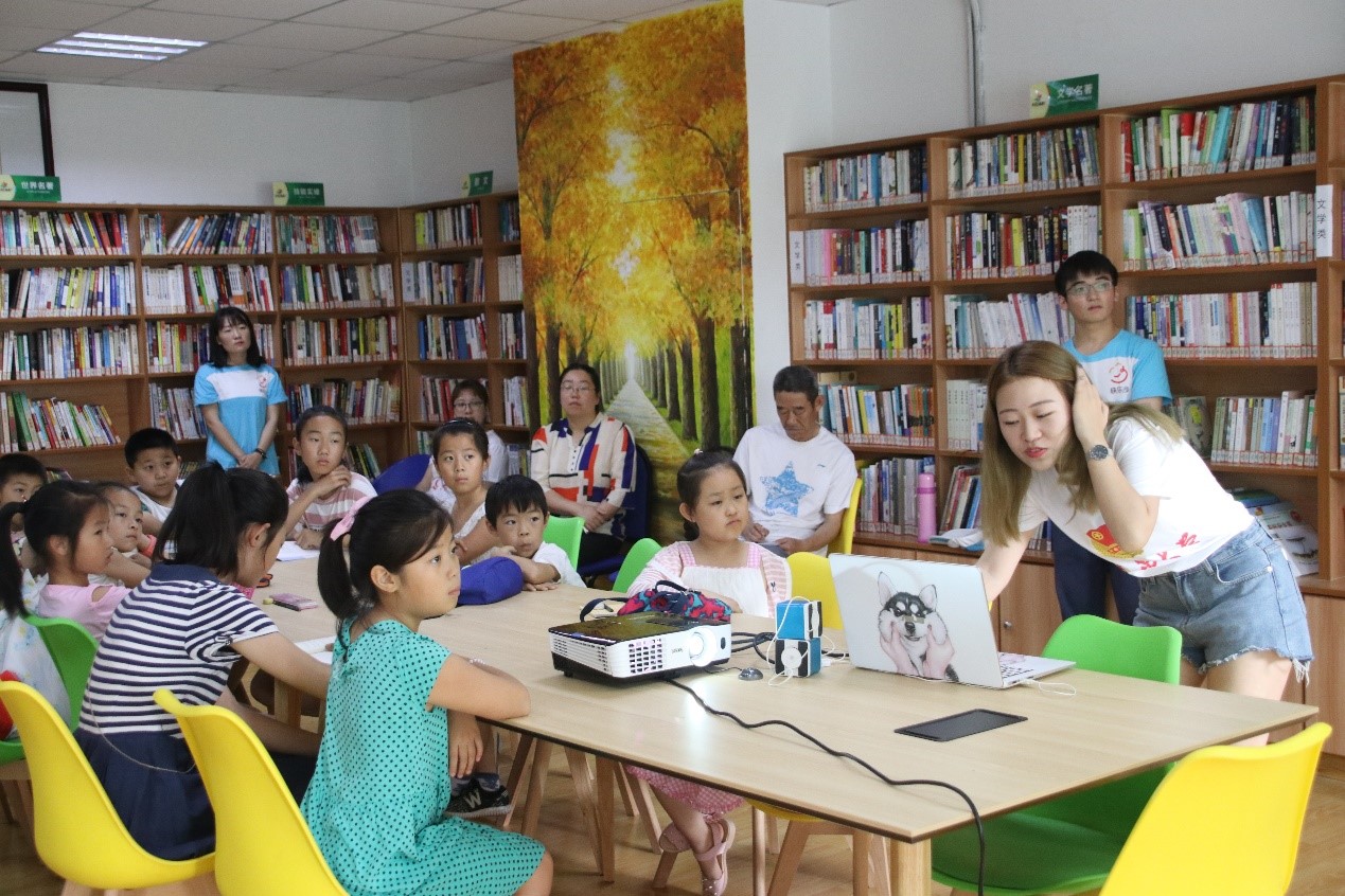 为了缓解长期授课给孩子们带来的疲倦感,队员们还准备了动画教学环节。李倩同学通过播放与授课内容相关的动画片《老鼠记者》,为孩子们讲解了新闻采访的基本通用技巧。让孩子们在得到视觉化享受的同时,还能够更加生动具体的了解记者采访所需要做的准备,也唤起了他们对新闻领域更进一步的好奇心。