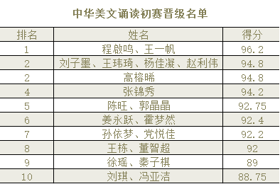 比赛以参赛选手诵读《吹号者》中开始,同样在诵读《吹号者》中结束。在比赛中,参赛选手回顾中国历史,讲述中国故事。初赛结束后,共有10组20位同学晋级。