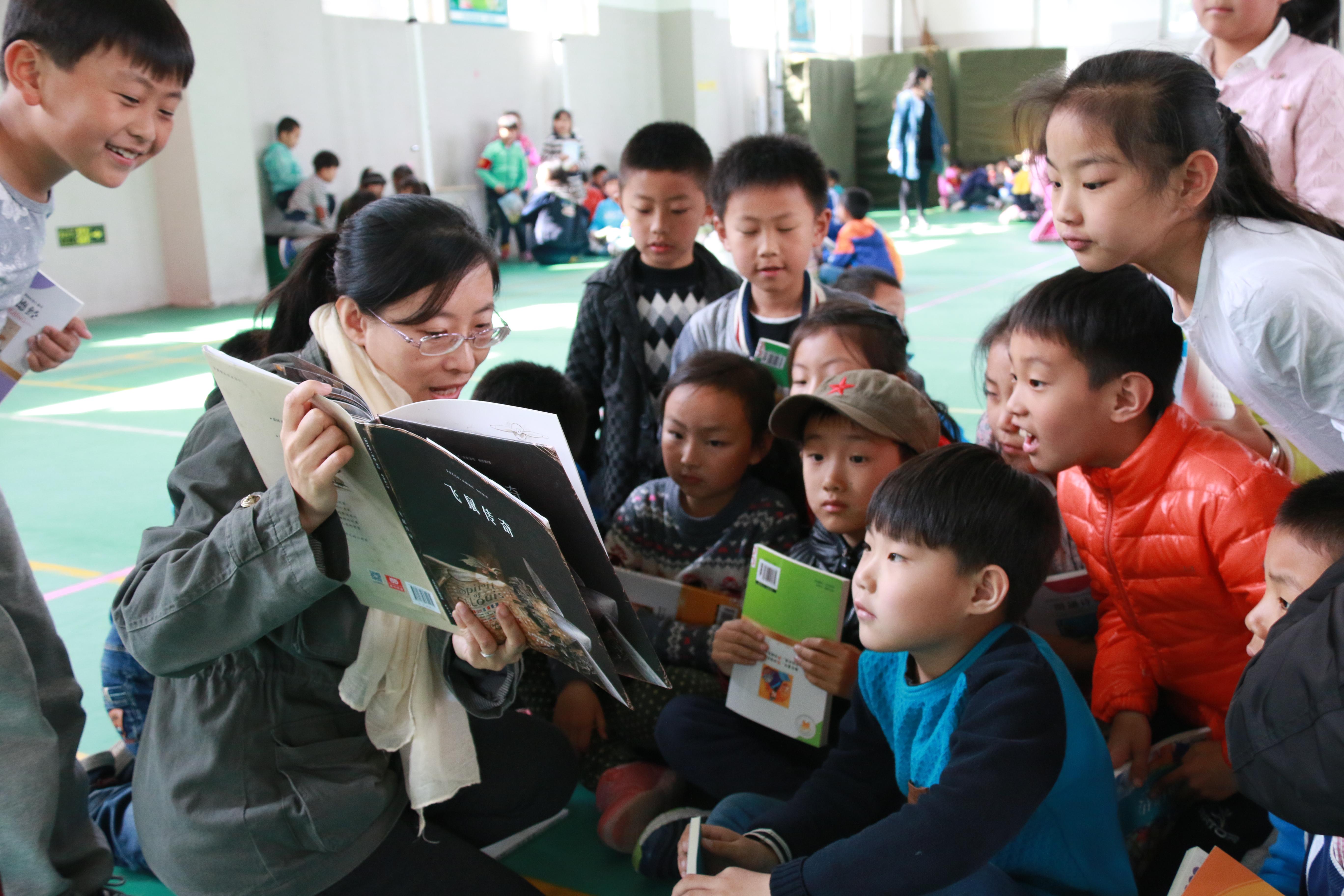 本次读书活动,是为了庆祝“4·23世界读书日”的到来。由博天堂娱乐城-博天堂官网新闻与传播学院、李沧路小学和爱基金“我爱图书角”项目组三方携手举办。活动现场,新闻系42名大一学生,新闻与传播学院副教授张文彦以及爱基金“我爱图书角”项目负责人、快乐沙公益阅读组织发起者林风谦先生,每人邀请五名小朋友围坐身边,捧起书籍,给孩子们声情并茂地朗读起来。