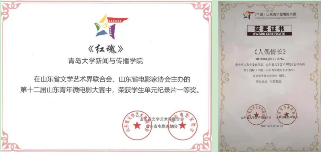 图19.新闻系获第二届“寻找山东最美大学校园”微视频/摄影大赛优秀组织奖