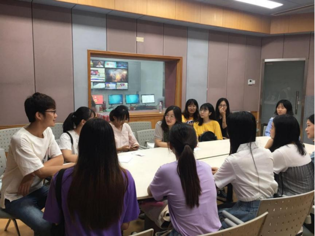 图22.新闻系师生在青岛广播电视台进行现场教学