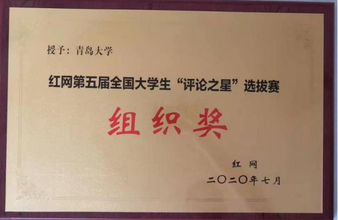 图18.新闻系获2020年度红网全国大学生“评论之星”选拔赛组织奖