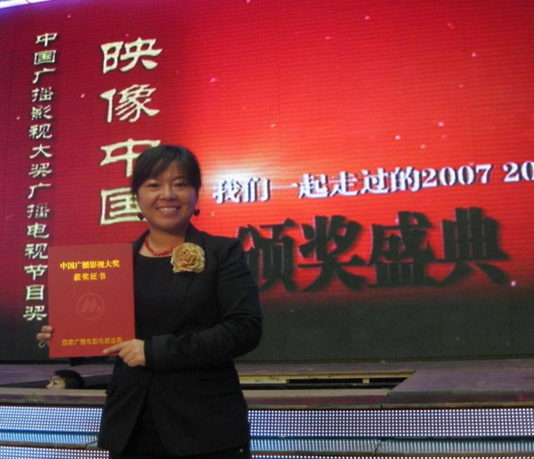 图15.新闻系毕业生王丽君获中国广播影视大奖一等奖