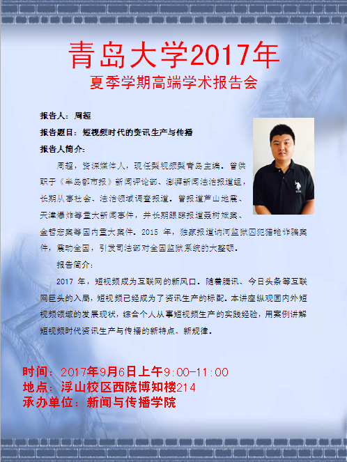 新闻与传播学院夏季学期高端学术报告会一周预告