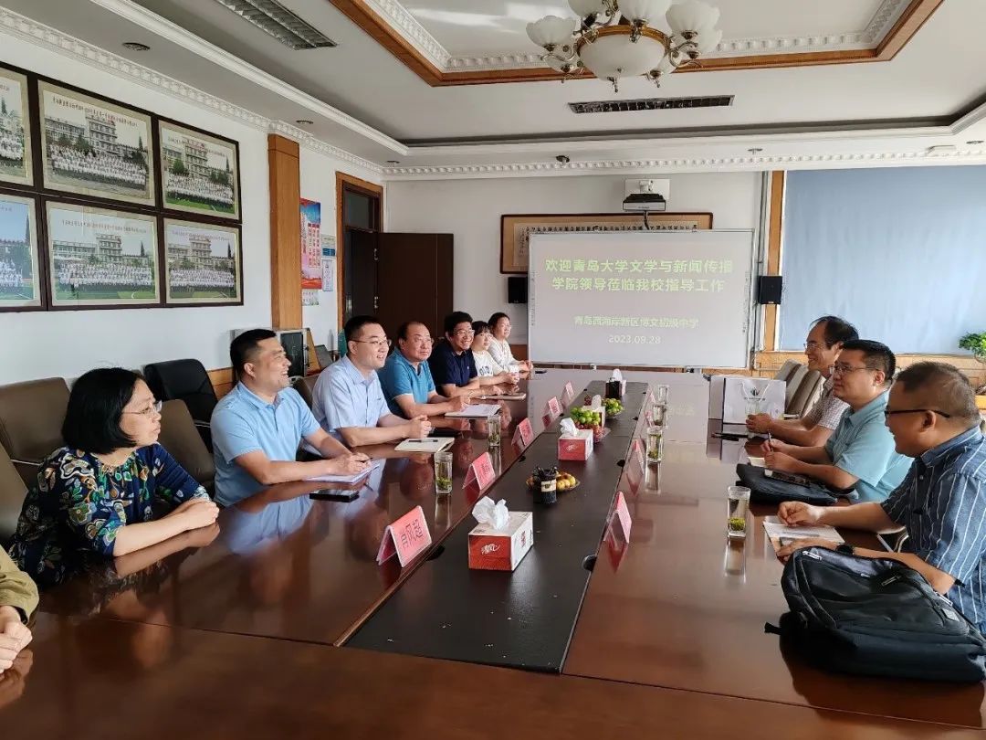 与西海岸教体局领导、博文中学领导和实习生座谈