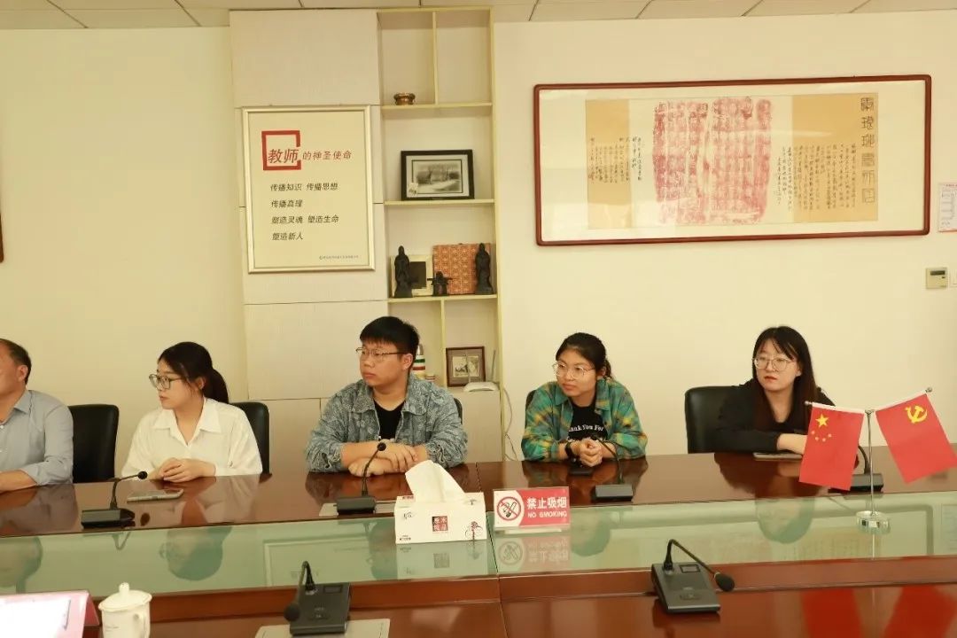西海岸新区教体局副局长杜刚、西海岸新区教体局人事科田玉发、博文初级中学徐全启校长、实验初级中学刘光平校长、育才初级中学薛荣岗校长与我校老师和实习学生参加了座谈会。