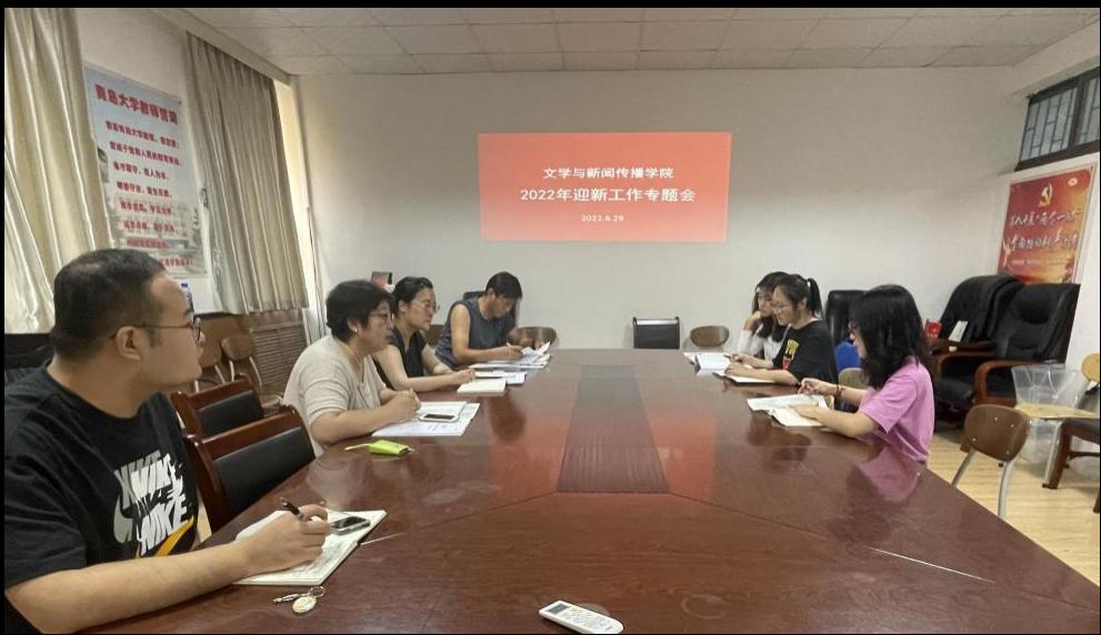 在博文楼219进行文学院学生骨干培训。学院党委副书记戚昕,团委书记马丰刚,学工办主任曹珺,以及学院全体辅导员参加会议。会议就新生迎新工作进行了重点部署,与会老师鼓励学生干部积极高效地完成迎新任务。2022年8月29日,2022年秋季学期迎新工作专题会在博文楼四楼会议室召开。戚昕副书记向全体学工人员传达了近期学校有关会议精神,肯定了开学初各年级学生工作开展情况,就做好当前2022级本科生和研究生新生迎新以及新生入学教育等工作进行了重点部署,同时鼓励全体学生工作人员要提升工作绩效,进一步提高学生工作质量和水平,力创具有文传特色的品牌和亮点,确保新学期学院学生工作再上新台阶。