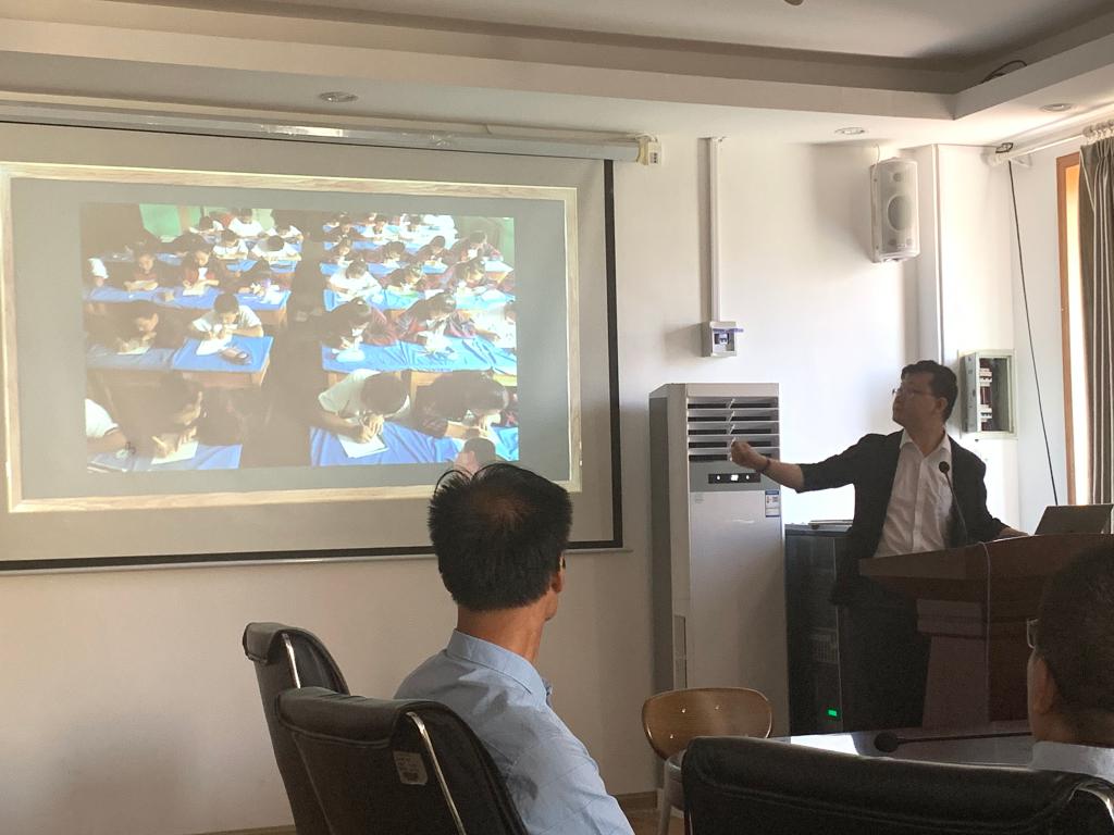 张宇顺老师以一个与报告同题的视频作为导入,讲述了以自己为原型改编的感人故事——主人公在小学时由于不会写“8”一度被认为是智力水平存在缺陷的特殊儿童,但在母亲和新班主任老师的鼓励下,成绩突飞猛进。长大后也成为老师的主人公,在其任教生涯中同样鼓励了一位自卑的女生获得写作比赛的一等奖。张宇顺老师以视频中的故事引出了他的四个教育观点,随后用雅斯贝尔斯的名言“教育就是一棵树摇动另一棵树,一朵云推动另一朵云,一个灵魂唤醒另一个灵魂”进行总结。