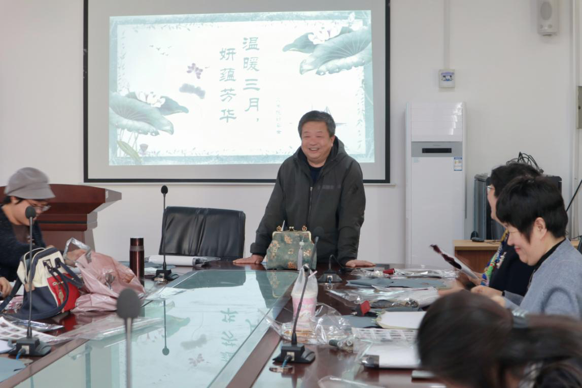 又到阳春三月,适逢妇女佳节,文学院女教师共聚一堂,庆祝“三八”妇女节。文学院妇委会于3月8日下午在博文楼五楼会议室举办了“温暖三月•妍蕴芳华”中国风复古包手工DIY制作活动,重拾岁月里的优雅与从容,体现了东方女性的温润之美。