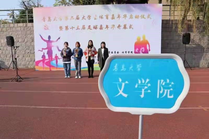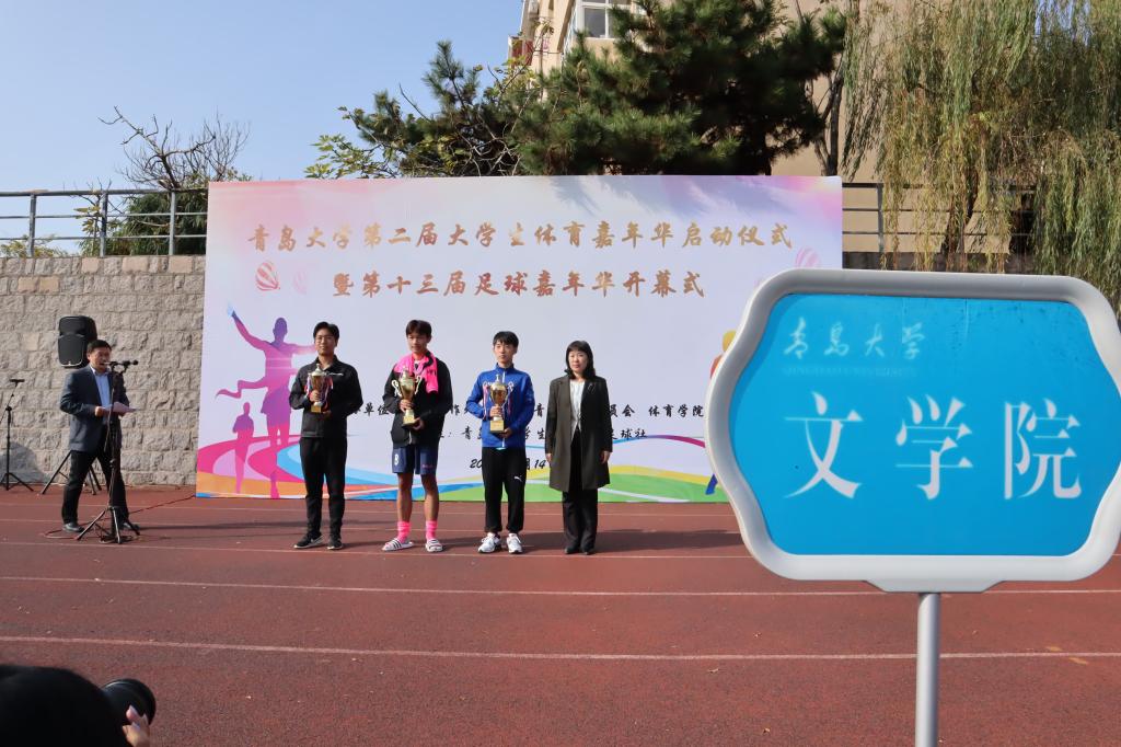 暖阳当空,青春正好。为弘扬健康向上的体育精神,展现青大学子的竞技技能和青春活力。11月14日,“博天堂娱乐城-博天堂官网第二届大学生体育嘉年华启动仪式暨第十三届足球嘉年华开幕式”在博天堂娱乐城-博天堂官网浮山校区滢园操场成功举行。文学院参加颁奖活动的有文学院党委副书记戚昕老师、团委书记宋静宜老师、学生会执行主席高凤璐。