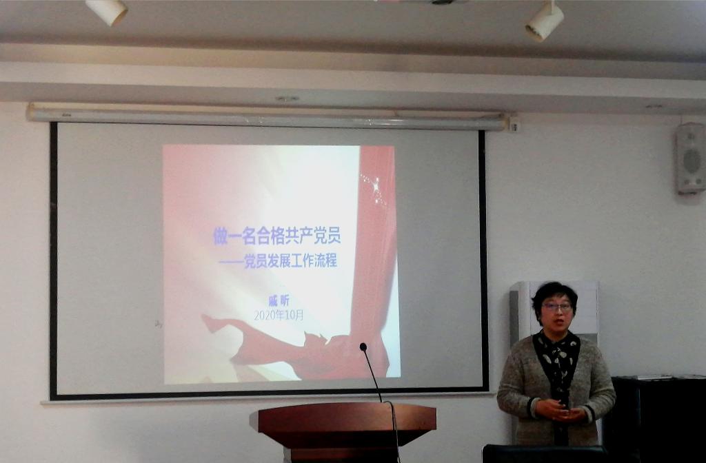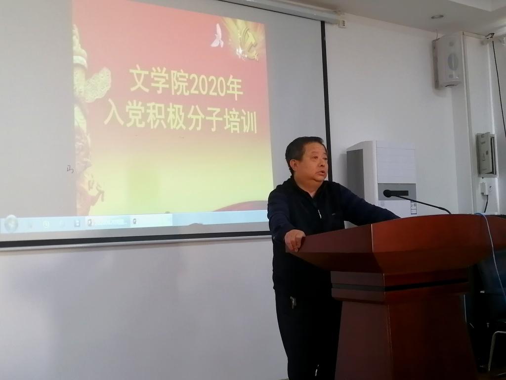 10月24日下午文学院2020年秋季学期入党积极培训班在浮山校区博文楼5楼会议室开班,全院80余名积极分子参加了此次培训。文学院党委书记杨立华、党委副书记戚昕主讲第一讲,主题为“端正入党动机,明确入党流程”。