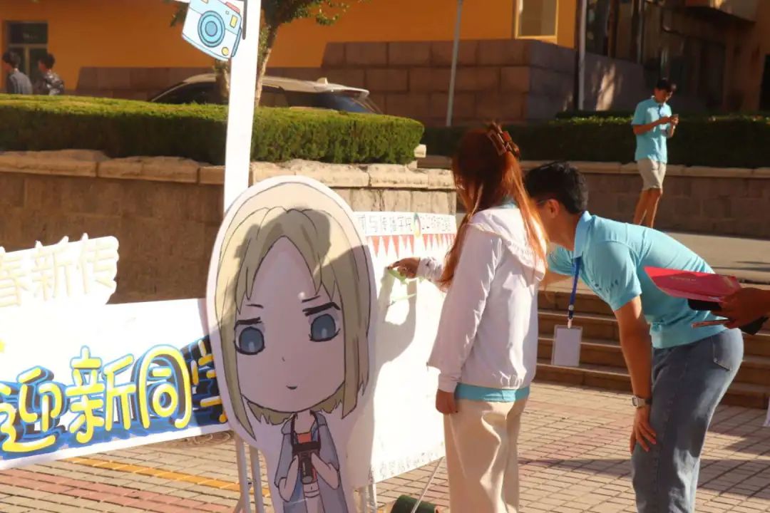 不仅如此,学院还为新生精心准备了签名板,新生在签名板上写下自己对大学四年的期待,对未来的愿景或者对自己的激励。