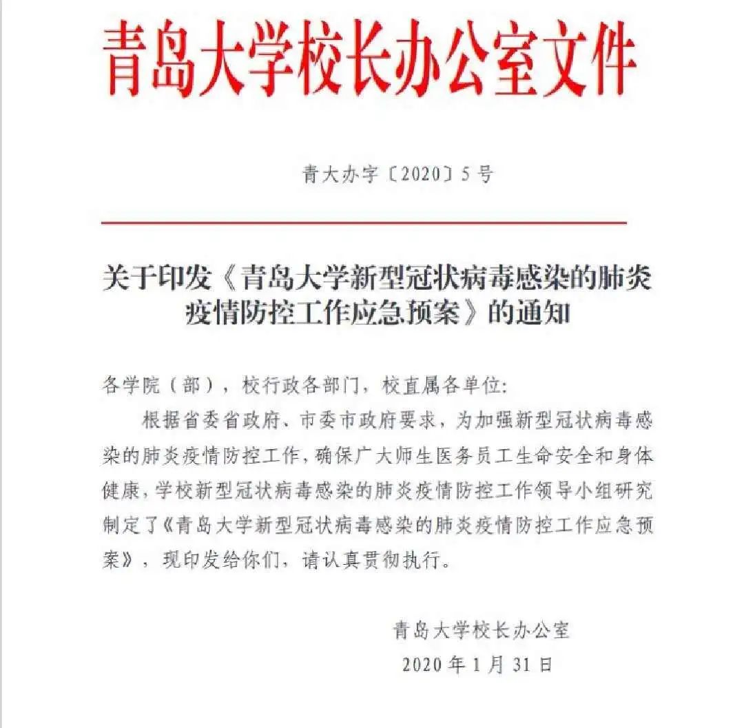 目前博天堂娱乐城-博天堂官网已经印发《博天堂娱乐城-博天堂官网新型冠状病毒感染的肺炎疫情防控工作应急预案》,文件指出要以习近平总书记在中共中央政治局常务委员会会议上的重要讲话精神为指导思想,以全校上下统一指挥、分级负责、属地管理为工作原则,建立防控组织指挥体系,制定假期紧急应对方法,做出开学延期的决定并对此进行充分准备,并对开学后日常防控和恢复正常教学秩序做了明确规定。