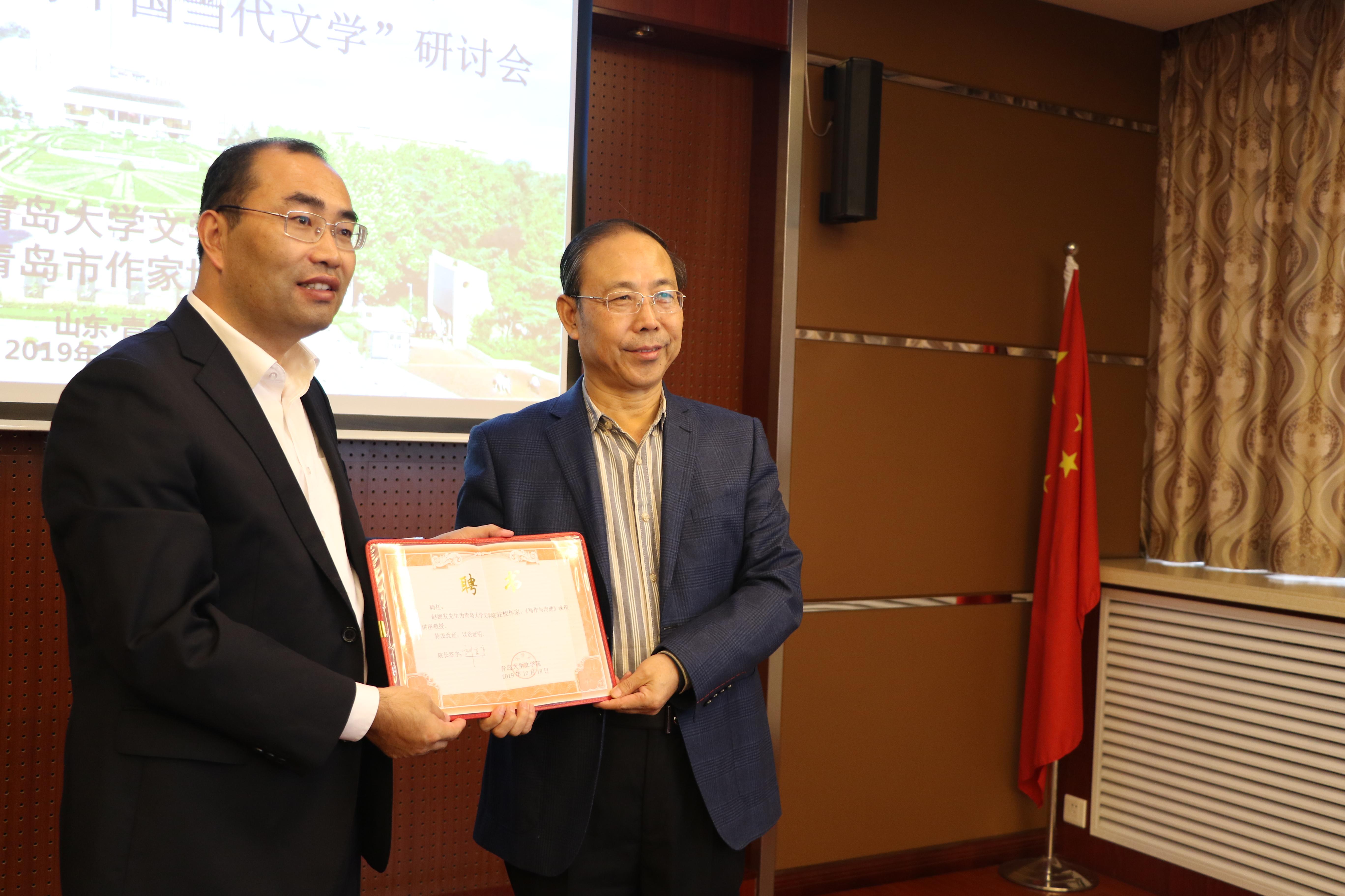 10月18日上午,博天堂娱乐城-博天堂官网赵德发驻校作家聘任仪式在博天堂娱乐城-博天堂官网浮山校区办公楼201会议室举行。博天堂娱乐城-博天堂官网党委常委、副校长孔伟金出席仪式并为受聘作家赵德发先生颁发聘书,青岛市作协主席高建刚,青岛文学馆馆长臧杰,青岛市文联秘书长章芳,以及博天堂娱乐城-博天堂官网周海波教授、吕周聚教授、王金胜教授出席聘任仪式,聘任仪式由博天堂娱乐城-博天堂官网文学院院长刘东方主持。