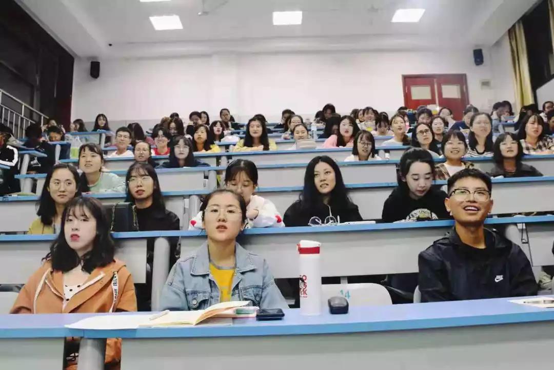2、此外,孙琳老师将国家历史背景与诗词讲解结合,并带领19级全体新生齐声朗诵毛主席的诗词——战争胜利后满载喜悦的《菩萨蛮 大柏地》、满怀战斗豪情记录红军长征艰险的《七律 长征》、表达革命者面对困难坚强不屈的《卜算子 咏梅》。在朗诵中新生们深刻理解体会到了革命岁月中的红色文化。特别是在讲解《沁园春 雪》时,孙琳老师不仅通过吟诵的方式来让同学们感受毛主席诗词的韵律美,还教同学们以歌唱的方式来表达这首诗词,从充满韵律富有张力的诗词中同学们体会到了毛主席的英雄气概以及其诗词中所包含的深厚的传统文化和古典底蕴。