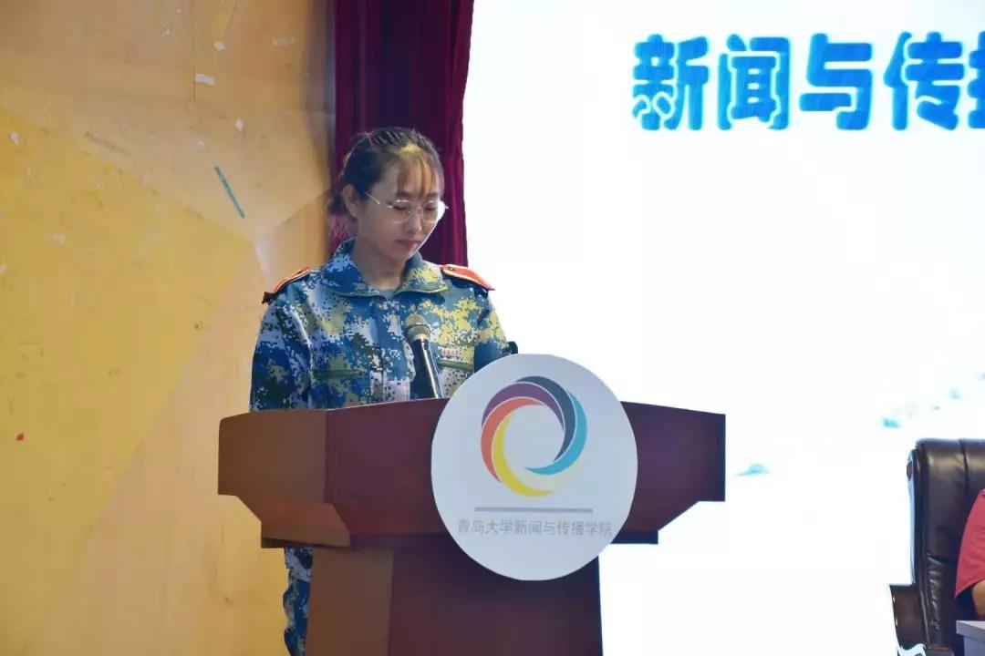 王晓庆同学则代表新生发言,表示经过两周严格的军训,同学们的体质、团队合作能力以及吃苦耐劳精神都得到了显著的提高。一入青大门,一生青大人。青大情意将永存心中。