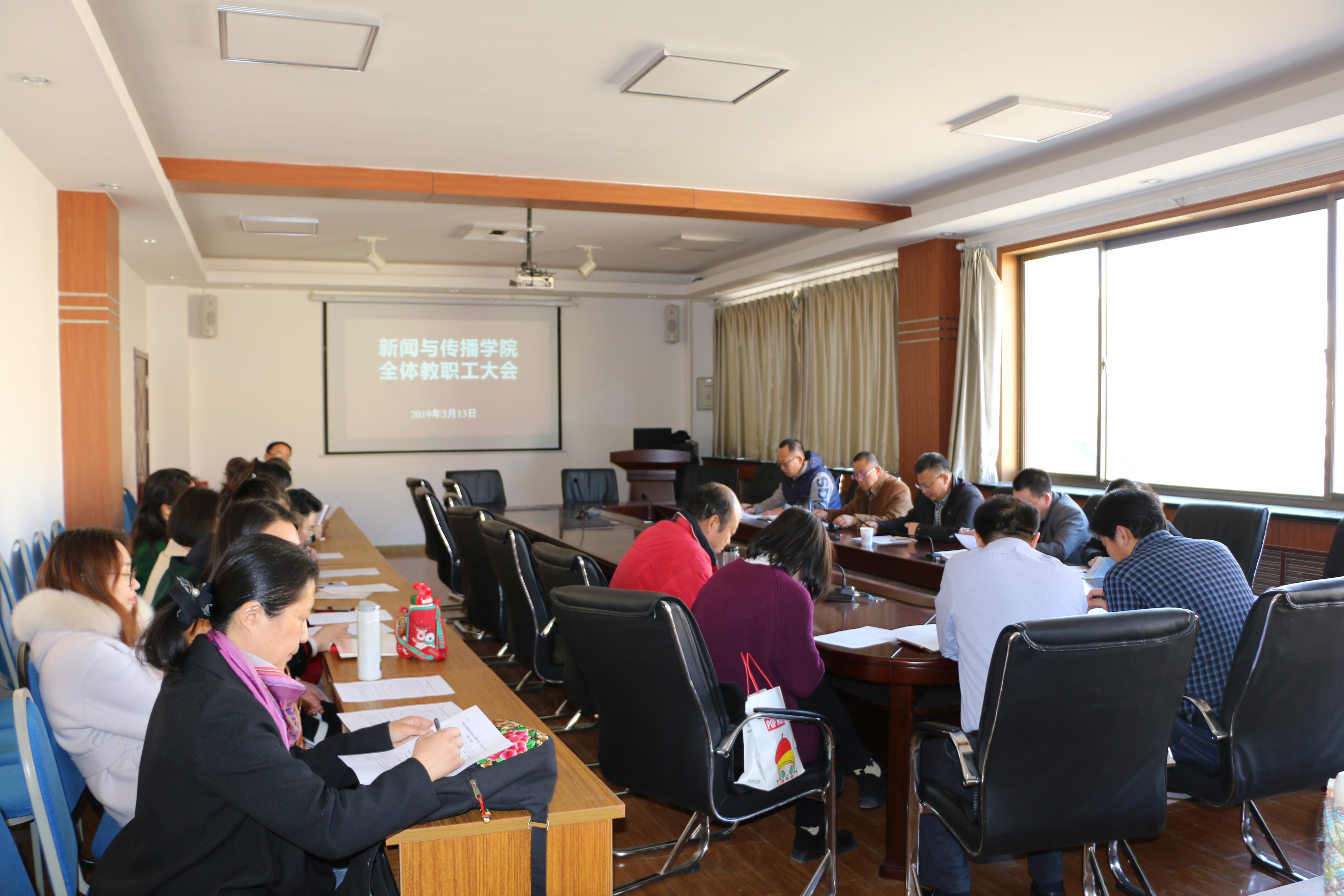 2019年3月13日,在雄壮的国歌声中新闻与传播学院在博文楼512会议室召开教职工(工会会员)大会,选举出席博天堂娱乐城-博天堂官网第六届教职工代表大会暨工会会员代表大会(简称“双代会”)代表。会议由罗清辉副书记主持。