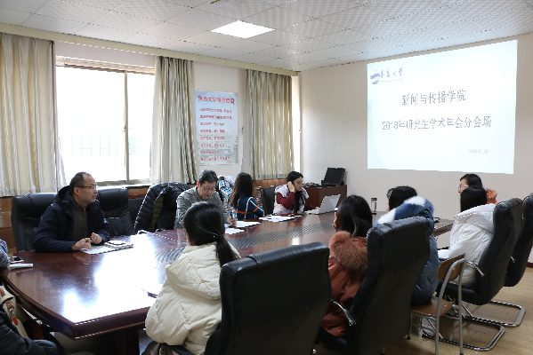2018年12月28日,新闻与传播学院研究生学术年会在博文楼412举办,本次学术年会由学工办主任王洪运老师主持,广告系陈谦老师、新闻系姜昕老师作为此次研究生导师到场,李璐老师进行组织筹备。