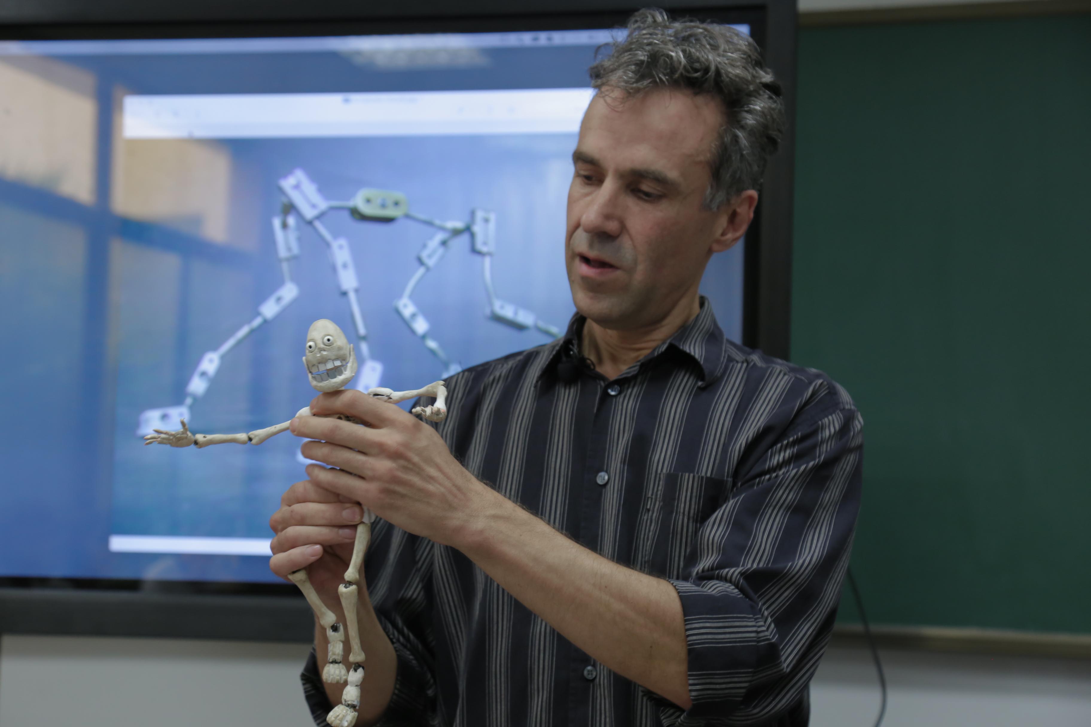 在为期一周的课程里,同学们系统学习了定格动画运动原理、骨骼制作、摄影及灯光知识,并配合专业定格动画拍摄软件(Dragonframe),创作了从简单的弹性运动、口型对位、剪纸人物、立体人偶到复杂形变的一系列富有创意的短片。Alberto导师说,与同学们的交流虽然有语言表达的局限性,但这种局限并没影响相互间的交流。他认为,交流中最重要的不是言语,而是眼神和肢体语言,更何况,大家有着共通的动画语言作为桥梁。“从同学们的作品中,我就读出了他们丰富的世界,读懂了他们真实的自我”。