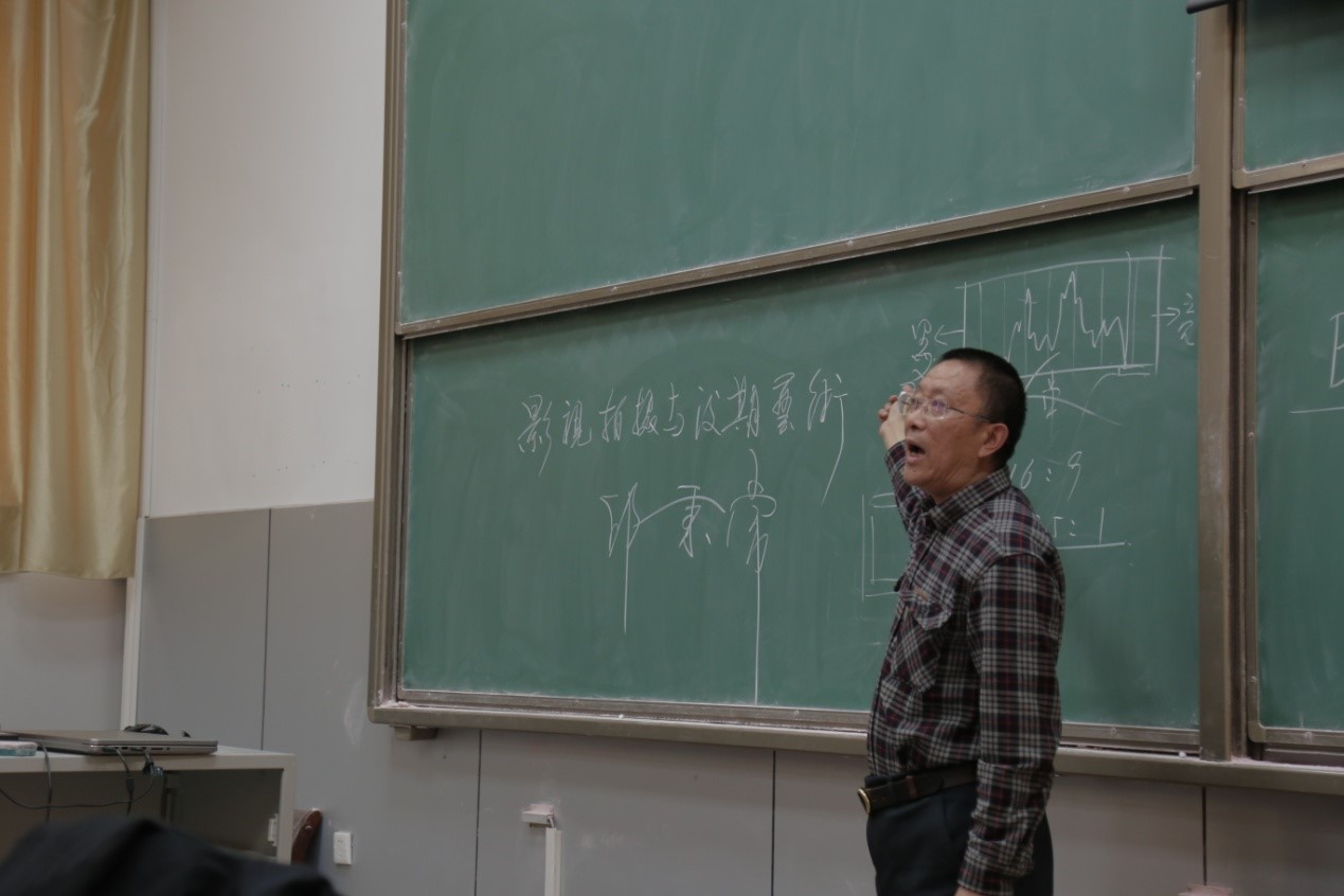 邱院长结合《泥土》《盲》等四部学生优秀作品对影视拍摄的结构、景别、构图、镜头等视听语言的相关内容进行了讲解,对后期剪辑过程中需要注意的问题与解决办法等基本问题作了阐释。并向同学们介绍了字幕的格式、唱词软件的使用方法、纪录片拍摄的镜头技巧等。讲座接近尾声,邱院长为同学们留下“先做人,后做事”的寄语,场下掌声不断。
