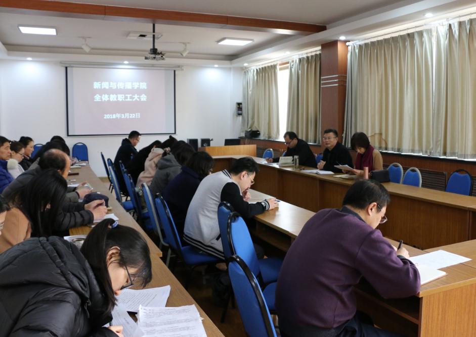 3月22日下午,新闻与传播学院在博文楼521会议室召开全体教职工会议,传达学校近期有关会议和文件精神,部署2018年学院工作。
