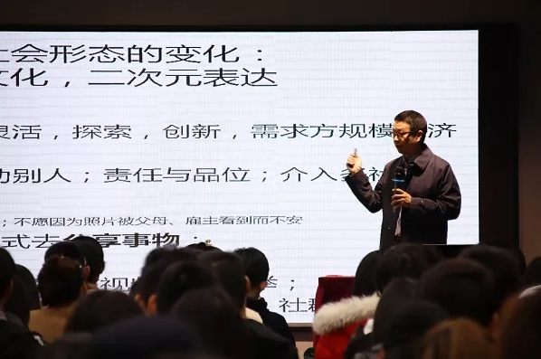 王辉先生,腾讯公司腾讯网媒体拓展部副总监,腾讯双创小镇(青岛)筹备负责人,腾讯众创空间青岛处负责人,高级产品经理。王辉老师参与传媒领域相关工作多年,对移动互联网的传播思维有着自己独到的经验与见解。报告开始,他用几幅图片向大家传达了这样一个事实:在瞬息万变的移动互联网时代,用户的喜好一直在不断发生改变,如果不密切关注新媒体的变化,只会成为被追赶得落荒而逃的对象。从用户的角度出发,打造、维护、深化关系,才能让产品走得更好更远。他以新世相自媒体、华闻周刊为例,指出只是把内容做大还不够,还要让用户参与进来说出他们自己的观点。增强交流,互相分享,让用户打动用户。