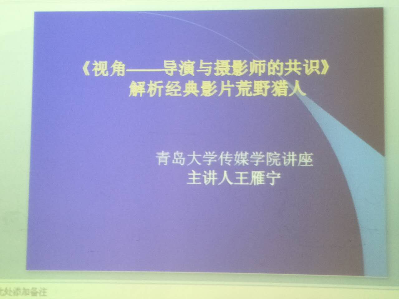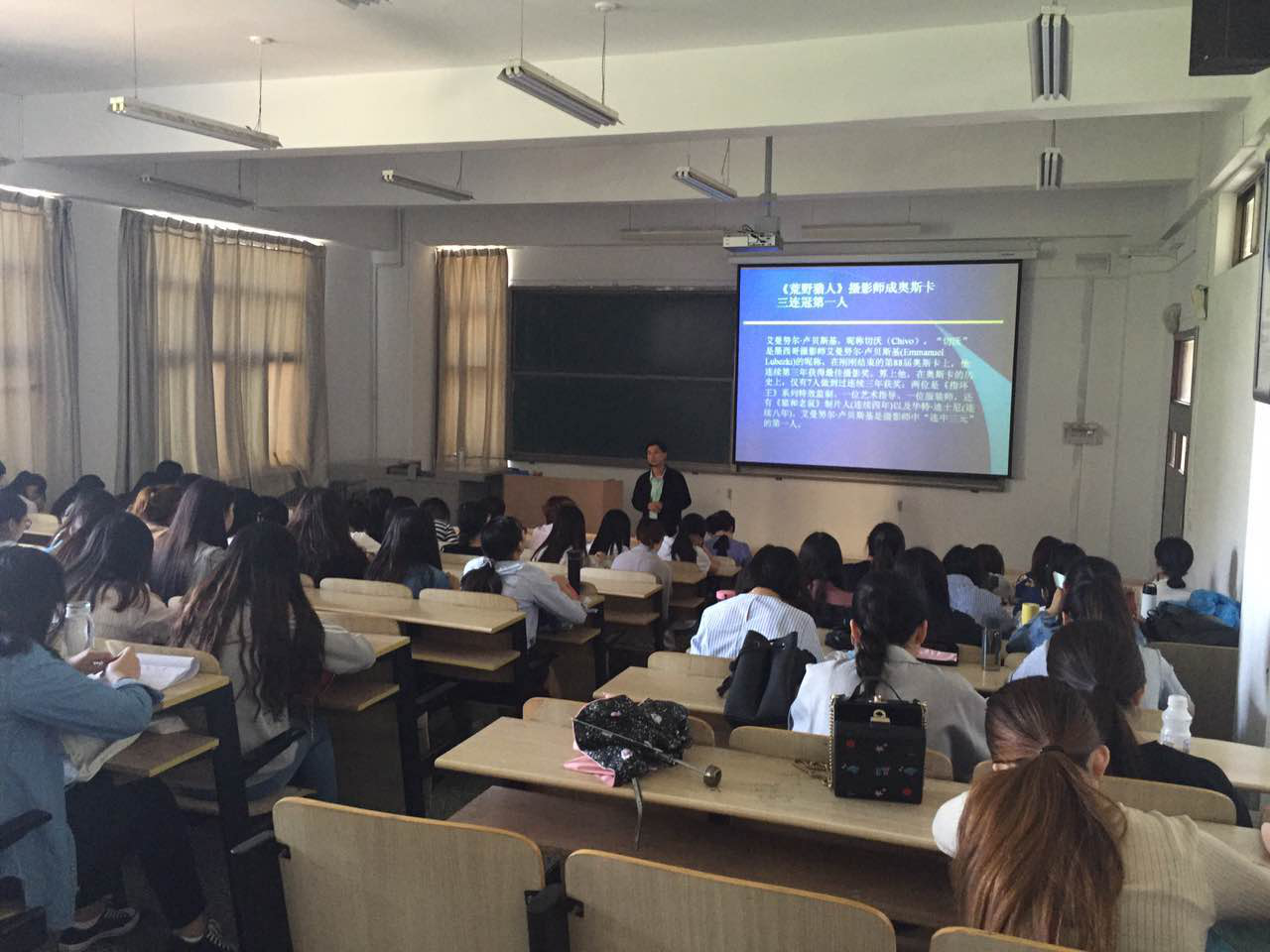 5月26日,博天堂娱乐城-博天堂官网新闻与传播学院于东12206教室,组织了“解析经典电影荒野猎人”的讲座。主讲人王雁宁老师,中国国家一级摄影师;青岛电视台高级摄影师;资深编导;中国人像摄影学会会员;微电影、纪录片导演;摄影及影像艺术策展人。其教学经历:2003年讲授数码摄影艺术课程;2010年讲授微电影和记录片课程;2015年讲授电影艺术欣赏课程;2016年与世界著名战地摄影记者法国新闻摄影大师罗授先生进行高端对话。王雁宁老师的艺术作品有:《教堂印象》个人摄影展、《我的百岁奶奶》个人网络摄影展、《记忆青岛》个人摄影展、《走进西双版纳》摄影作品、《中法摄影家风情摄影展》摄影作品展、 《华夏掠影 夕阳无限》摄影作品展、《天阶》电影作品(日本佳能公司邀请拍摄)、《梦寻江南》 电影作品、《荷之恋》电影作品(日本富士公司邀请拍摄)。