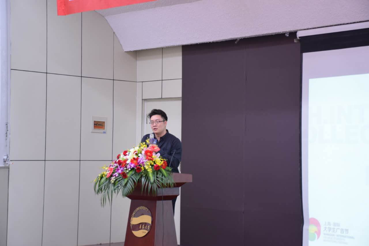 之后由金俊毅老师详细介绍了赛事情况,重点指出上海国际大广节的优势:具有国际化视野,以兴趣作为导向,创办大课堂模式,与企业进行对接。金总强调,上海大广节具有自己的平台优势,开创互联网+创新课堂,充分利用互联网资源,并且邀请业界优秀广告人做分享,对同学们进行线上线下辅导。大赛过程中,还会安排知名企业模拟招聘,真正做到学术和实践相结合。