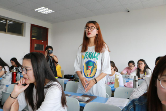 讲座一开始,金小菲先对同学们提出了三个问题:作为新闻系的学生,大家当初为什么要选择学习新闻?同学们认为记者每天的工作是怎样的?发生突发事件的时候记者应该怎么去做?