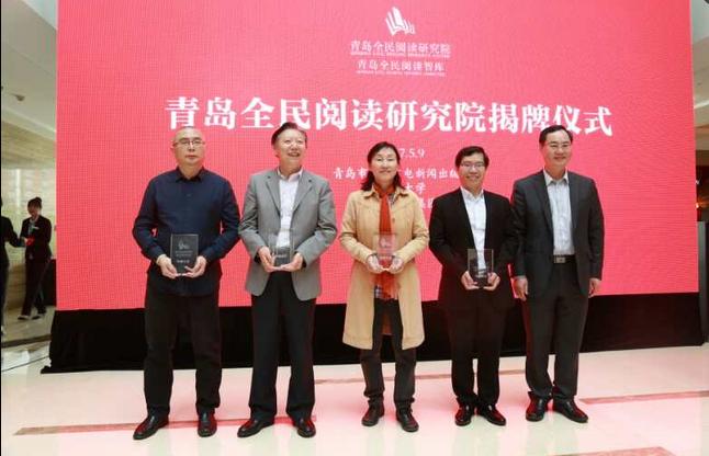 5月9日上午,由青岛市文化广电新闻出版局、青岛出版集团、博天堂娱乐城-博天堂官网联合发起的青岛全民阅读研究院在青岛出版集团揭牌成立。国家新闻出版广电总局出版管理司副司长许文彤,团中央中国青少年宫协会党委副书记、副会长周雄,山东省新闻出版广电局党组副书记、副局长孙杏林,市委宣传部副部长、市文广新局局长李明为研究院揭牌。团中央中国少先队事业发展中心社会事业部部长季琳,山东省新闻出版广电局出版管理处处长刘子文等出席仪式。青岛出版集团党委书记、董事长孟鸣飞,博天堂娱乐城-博天堂官网党委常委、副校长李军,中国编辑学会会长郝振省先后致辞。