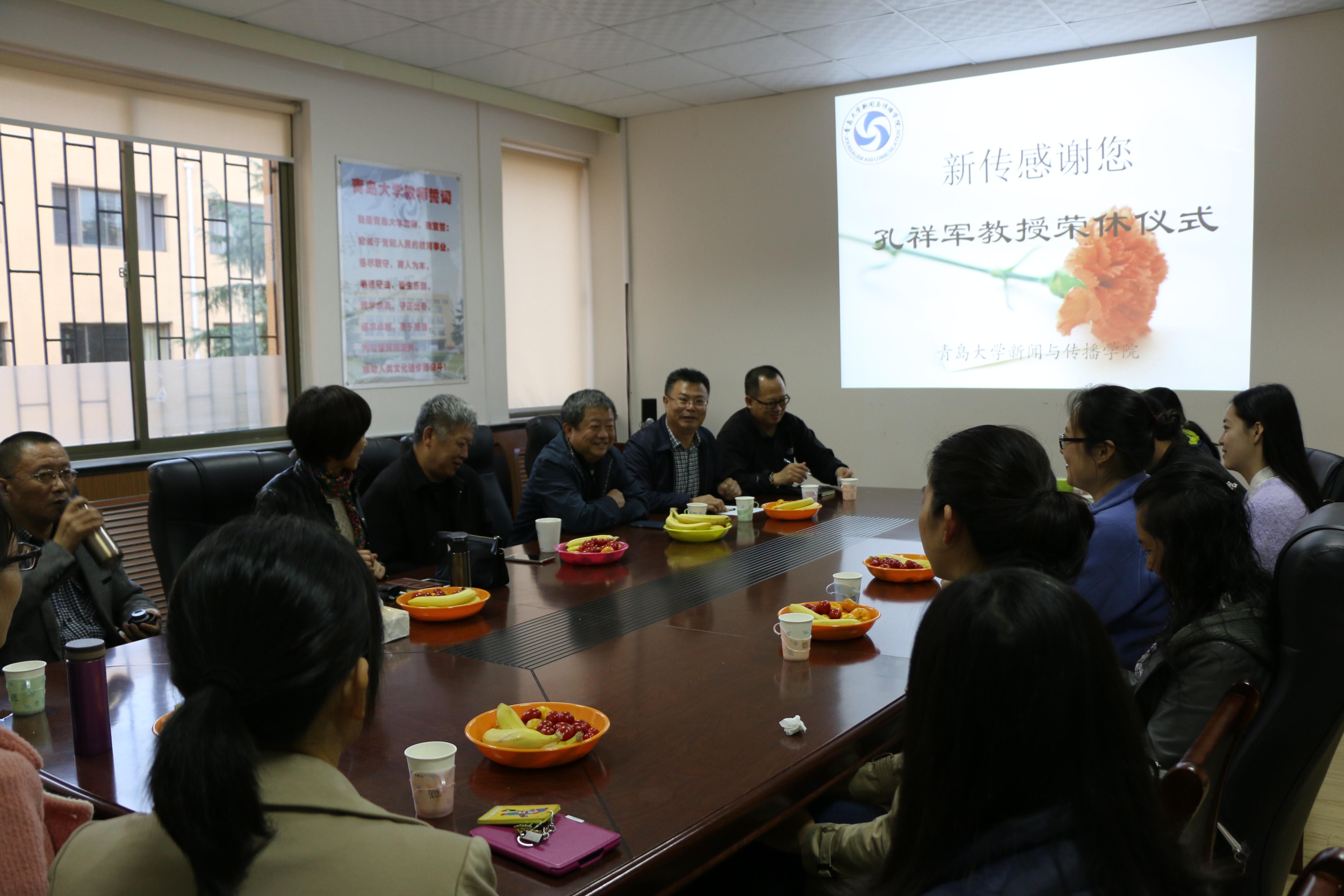 10月27日下午,新闻与传播学院举行“新传感谢您”——孔祥军教授荣休仪式。学院党政领导、新闻系以及其他系教师、部分学生代表参加了荣休仪式。在温馨热烈的气氛中,大家一同回顾往昔,祝贺孔教授光荣退休。学院党委书记张银亭主持仪式。文学院党委书记杨立华应邀出席仪式。