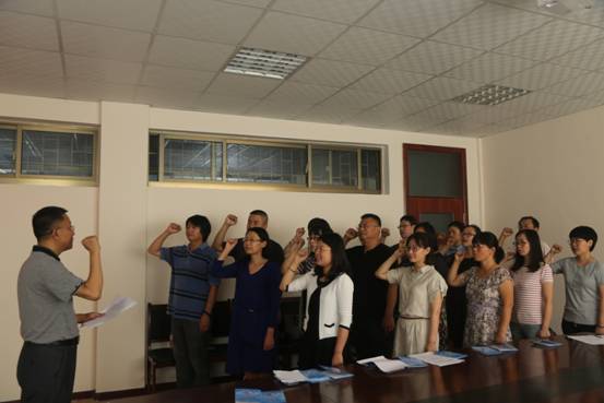 全院教职员工举起右手,庄严宣誓:“我是博天堂娱乐城-博天堂官网教师,我宣誓:忠诚于党和人民的教育事业,恪尽职守,育人为本;明德守法,爱生乐群;博学求真,守正出奇;追求卓越,勇于担当,为实现民族复兴、推动人类文明进步而奋斗!”