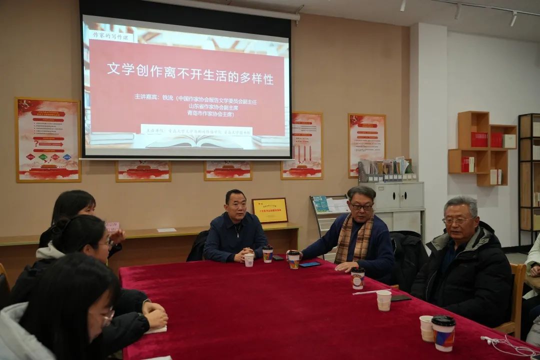 自由互动环节中,同学们从人物塑造、时代特色等方面进行了提问。铁流结合自身经验进行了解答,并与同学们深入交流了各种写作方法和技巧。