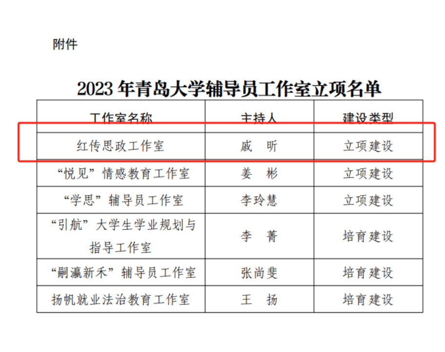 2023年博天堂娱乐城-博天堂官网辅导员工作室立项名单公布,经个人申报、单位推荐、现场答辩、专家评选,博天堂娱乐城 红传思政工作室获立项建设。