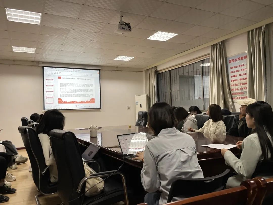 随后,院研会秘书处部长李雨佳和同学们分享经典读物《习近平与大学生朋友们》,并带领同学们详细解读了书中的第三章《习近平同志提倡年轻人要“自讨苦吃”》。书中习近平总书记对青年始终寄予热切的期望,无论工作多么繁忙,他总要抽出时间给大学生写信,到学校看望大学生,与学生们座谈。作为新时代的青年,我们要善于“自讨苦吃”,在实践中获得真知灼见,用实际行动来投身祖国的伟大事业。