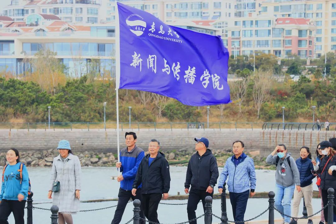 当日下午一点三十分,活动参与人员准时在博文楼下集合,简单的启动仪式后,新传健步行队伍向小麦岛进发。新传教职工队伍一路结伴而行,学院领导借此机会关心学院教师职工工作教学状况,互相交流学院工作,探讨未来发展路线,欣赏青岛深秋美景,氛围和谐温馨。