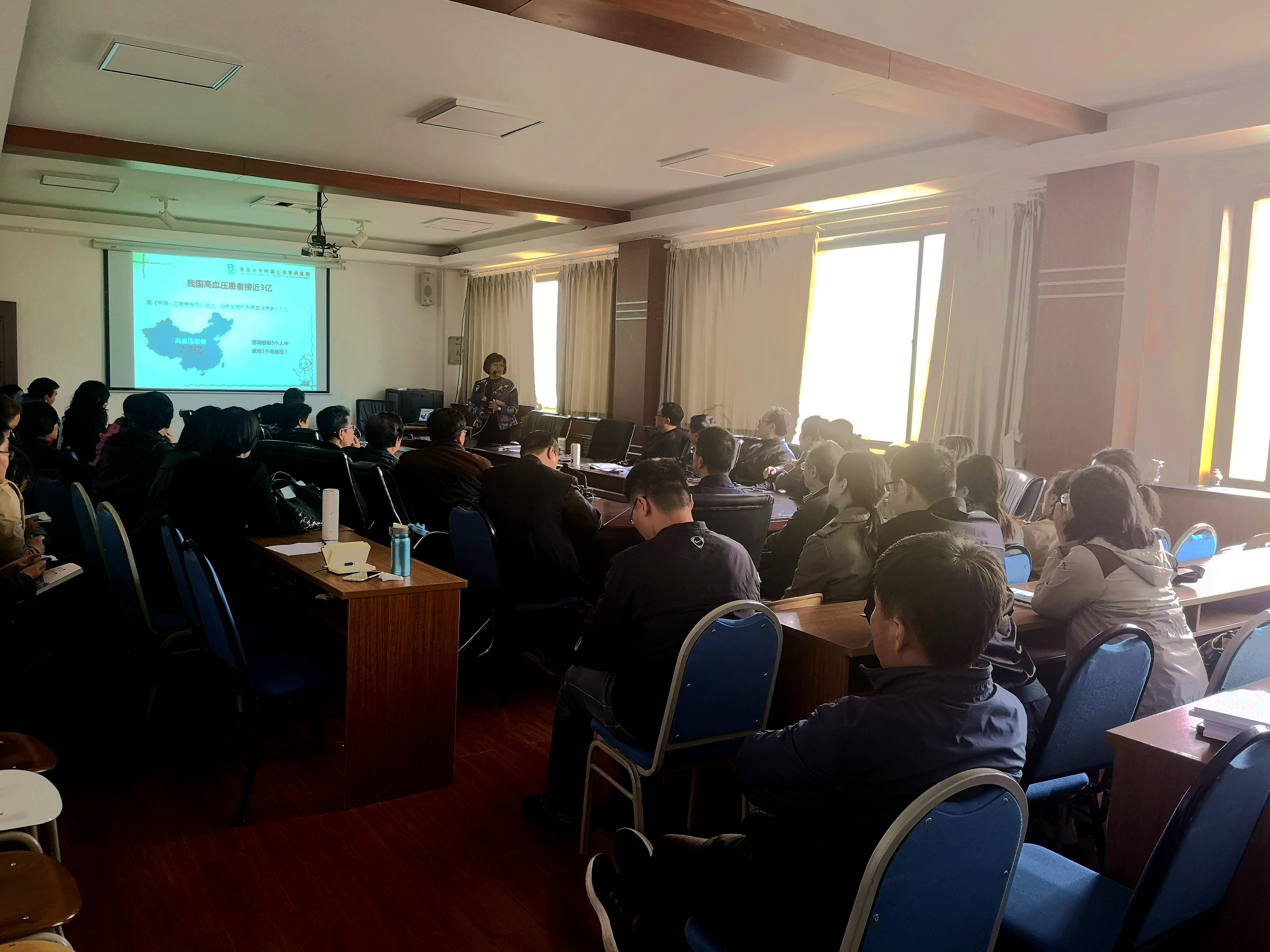 王涛医生的讲座题目为《高血压防与治》,她运用浅显易懂、深入浅出的语言,从高血压的危害、诊断标准、早期症状与诊断、药物治疗、如何保持健康的生活方式等方面对高血压的专业知识进行了讲解,为大家上了一堂别开生面的高血压防治课。课后,教职工就自己感兴趣的问题与王涛医生进行了沟通交流,解除了很多心血管病方面的疑惑,对什么是健康的生活方式和如何保持健康的身体有了科学的认识。